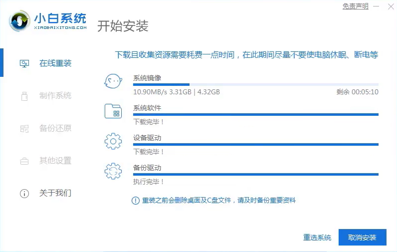 5、接着进入下载系统的环境,下面的操作都是自动运行的,只需要保证电脑不断电、休眠等情况即可。