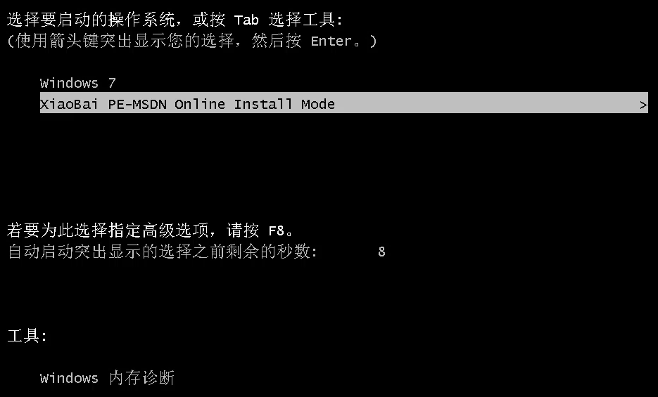 6、下载完成后,电脑重启,选择下面的小白PE进入。