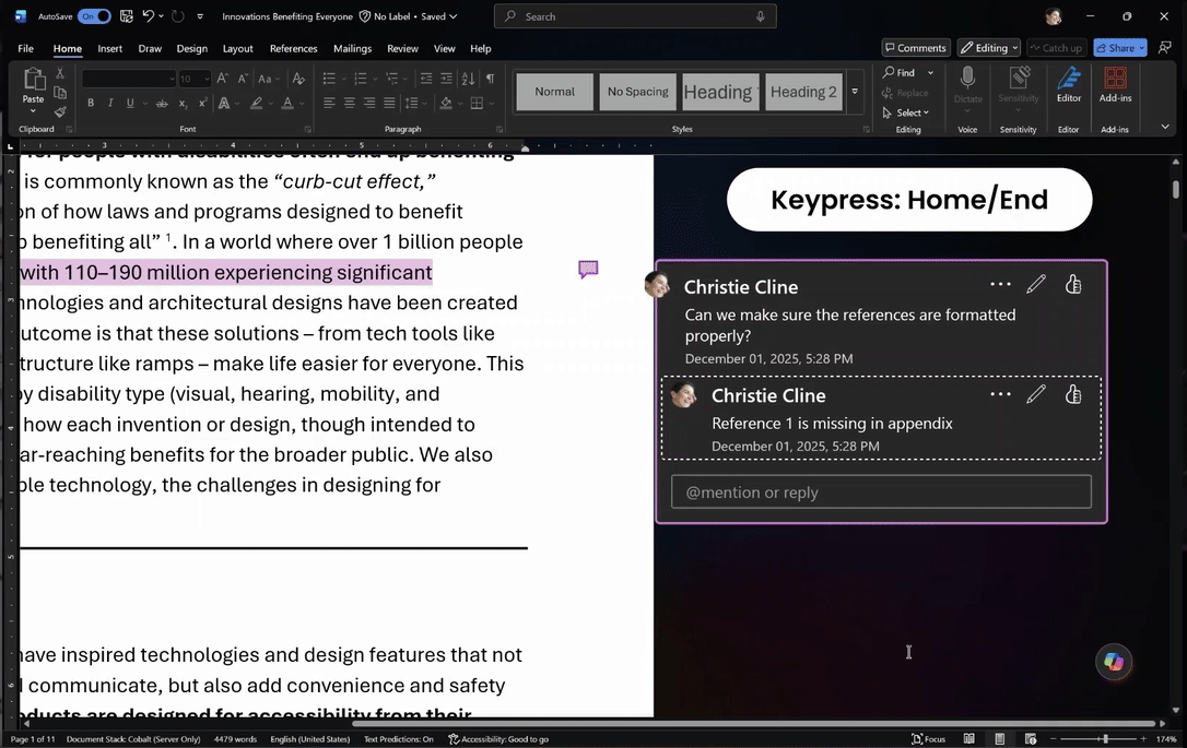 微软 Word 无障碍功能更新:Alt+F12 一键直达批注,新增智能播报功能