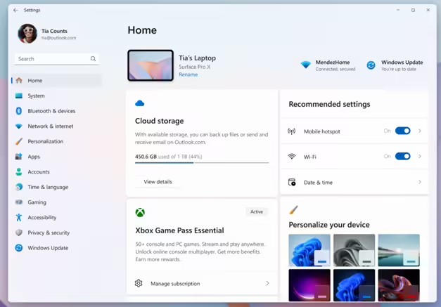 设置主页反映了新的 Game Pass 品牌和优势