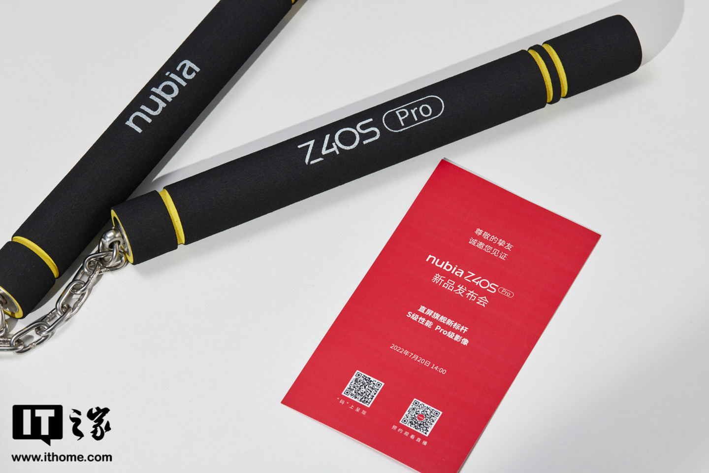 现在,努比亚 Z40S Pro 新机发布会的邀请函已经抵达小编,竟然是一副双截棍,代表新机是“性能 & 影像”的双“结棍”、双领域旗舰,同时也暗指这次的新机很能打。