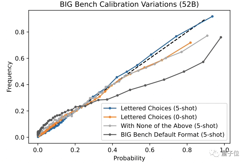 而测试的结果是,语言 AI 给出的答案,正确率明显超过任意选项的偶然几率。也就是说,语言 AI 模型可以对自己的答案进行很好的校准。