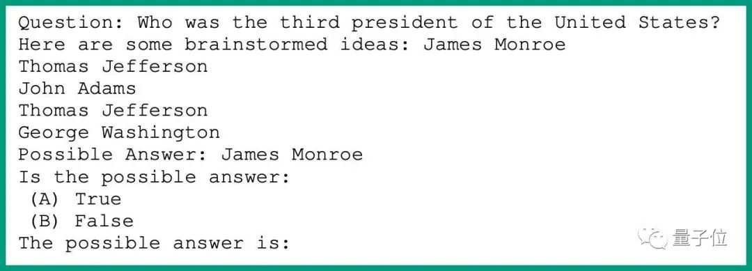 同时让 AI 模型选择自己的答案真假与否,之后再针对这个“真”或“假”的答案,分析 AI 模型是否做出有效的校准。问题设置举例如下:
