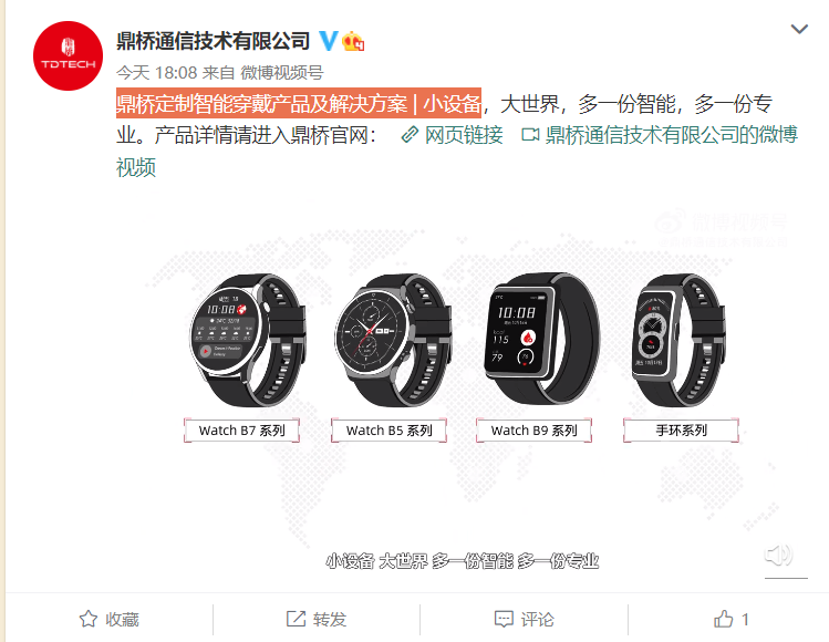 鼎桥将推出定制智能手表 / 手环:包括 Watch B7 / B5 / B9 系列等