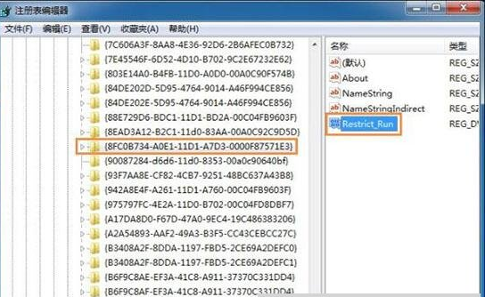 2、按照顺序依次找到:HKEY_CURRENT_HACHINESoftwareMicrosoftMMCSnapins{8FC0B734-A0E1-11D1-A7D3-0000F87571E3}。