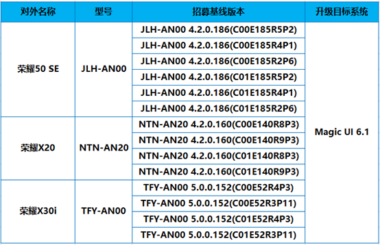 荣耀 50 SE、X20、X30i 开启 Magic UI 6.1 内测招募,基于安卓 12