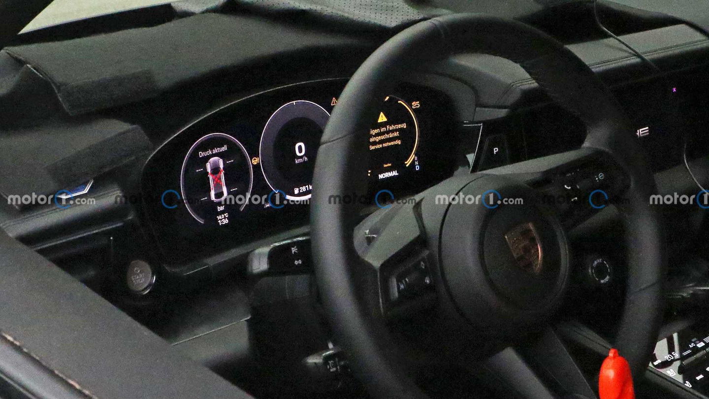 在车的两侧,保时捷用胶布覆盖了车门的下半部,而且还有另一个贴纸,用来隐藏后门窗户的形状和车顶的线条。