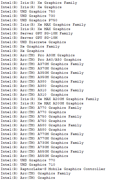 根据驱动文件,英特尔 Arc 桌面显卡包括 A770、A750、A580、A380 和 A310,此前爆料的 A780 和 A350 不在其中。