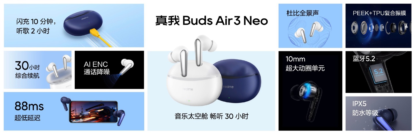 首发价 129 元,realme 真我 Buds Air3 Neo 蓝牙耳机明日零点开售