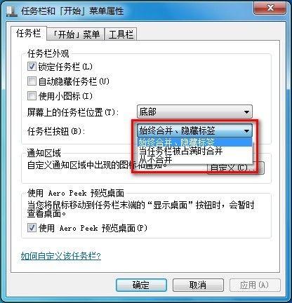 Windows7系统设置任务栏图标是否合并或者隐藏标签(图文教程)