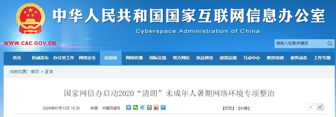 小编 7 月 18 日消息,据央视新闻报道,中央网信办等部门将组织开展为期 2 个月的专项行动,聚焦未成年人使用频率高的短视频直播、社交、学习类 App、网络游戏、电商、儿童智能设备等平台,集中解决涉未成年人问题乱象。