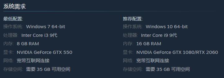 小编了解到,Steam 平台的《天下 3》仅支持简体中文,最低配置要求 GTX 550 即可游玩。不过,游戏的推荐配置可不低,要求酷睿 9 代 i9 和 GTX 1080 / RTX 2060。