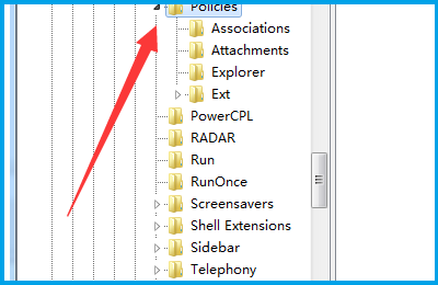 3、依次打开文件夹:【HKEY_CURRENT_USER】【Software】【Microsoft】【Windows】【CurrentVersion】【Policies】。