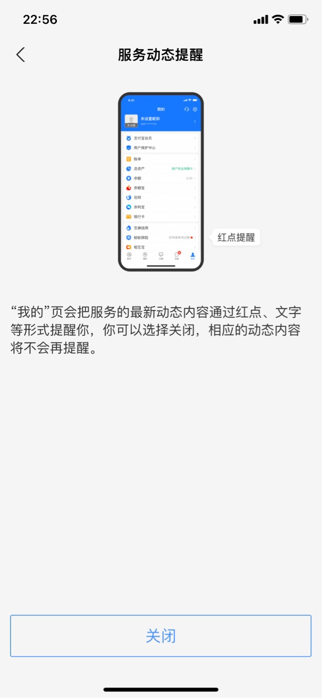 支付宝 App 新增“我的”页设置,可关闭烦人小红点