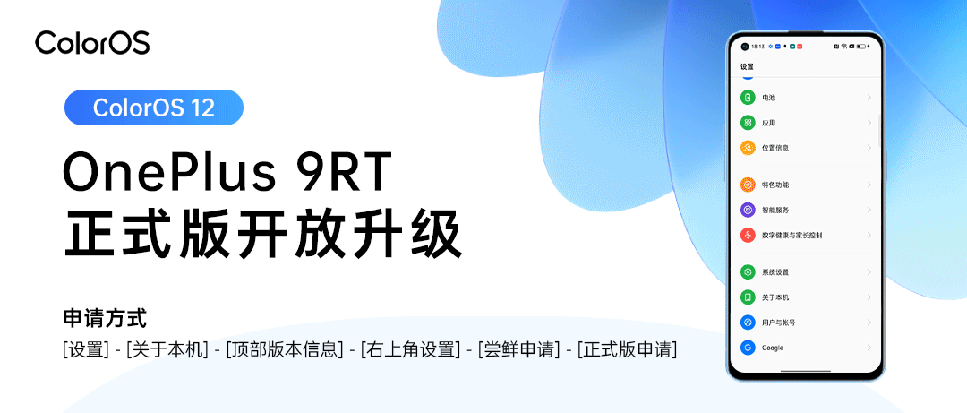 小编 7 月 19 日消息,昨日,ColorOS 官方宣布,一加 9RT 5G 开放 ColorOS 12 × Android 12 正式版升级(正式版版本号为 C.04 及以上)。