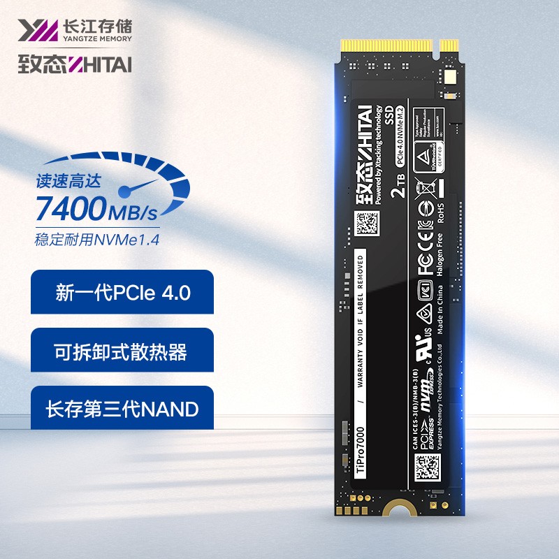 小编 7 月 19 日消息,去年年底,长江存储旗下致态发布了 TiPro 7000 国产 PCIe 4.0 SSD,搭载长江储存第三代 NAND 和英韧 12nm Rainier IG5236 主控,最高 7.4GB / s,1TB 首发价 1099 元,512GB 699 元。