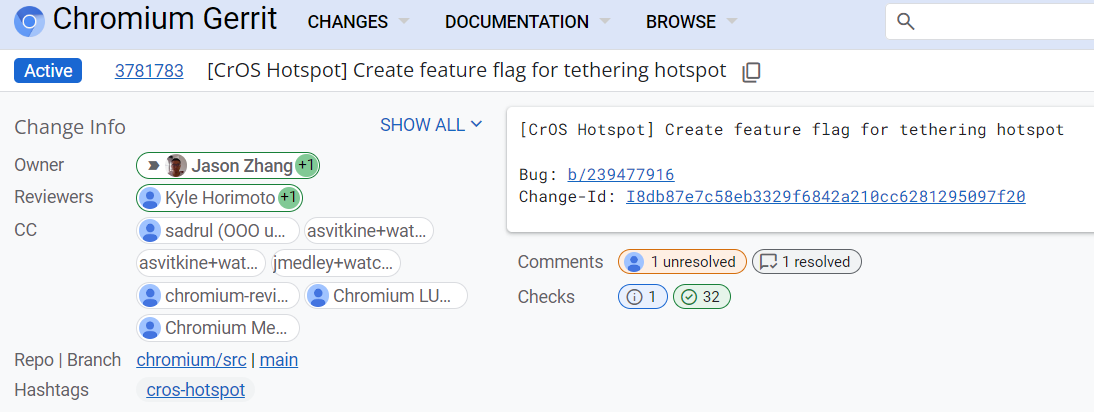 根据 Chromium 的 Gerrit 代码提交,ChromeOS 或许很快就会补上这一功能,使 Chromebook 能够通过 Wi-Fi 与其他设备共享其互联网连接。