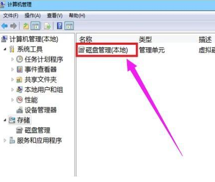 2、在计算机管理窗口中,在左边找到存储,打开,然后在存储的磁盘管理,双击打开;