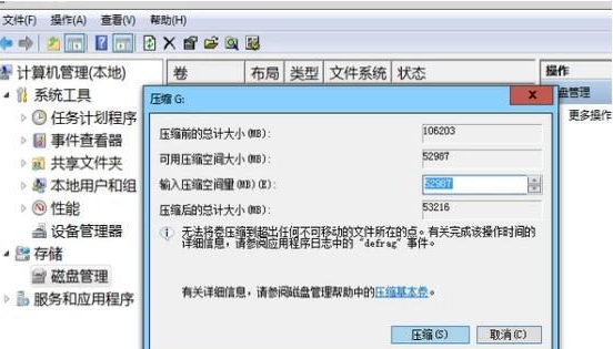 4、接着在压缩的对话框中,在“输入压缩空间量”上面输入压缩的大小,然后再点击“压缩”即可完成操作;