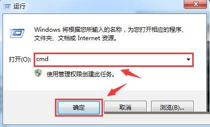 1、首先我们同时按下键盘上组合键“Win+R”打开运行窗口,在运行窗口中输入“cmd”命令并确定。