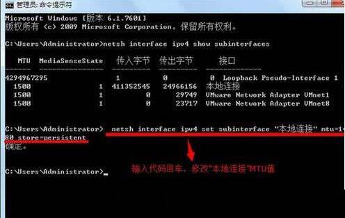 Win7修改本地连接MTU值的方法: