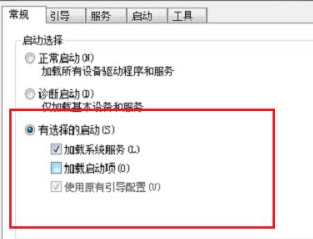 2、进去系统配置常规界面之后,选择“有选择的启动”,并且取消“加载启动项”的勾选。