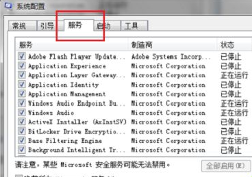3、点击系统配置的服务,进去之后,可以看到当前正在运行的所有服务。