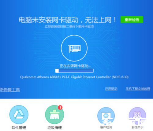 2、等待软件检测提示后点击相应按键修复网卡驱动即可。