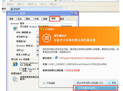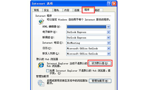 第三步:选择程序标签-设置默认值。