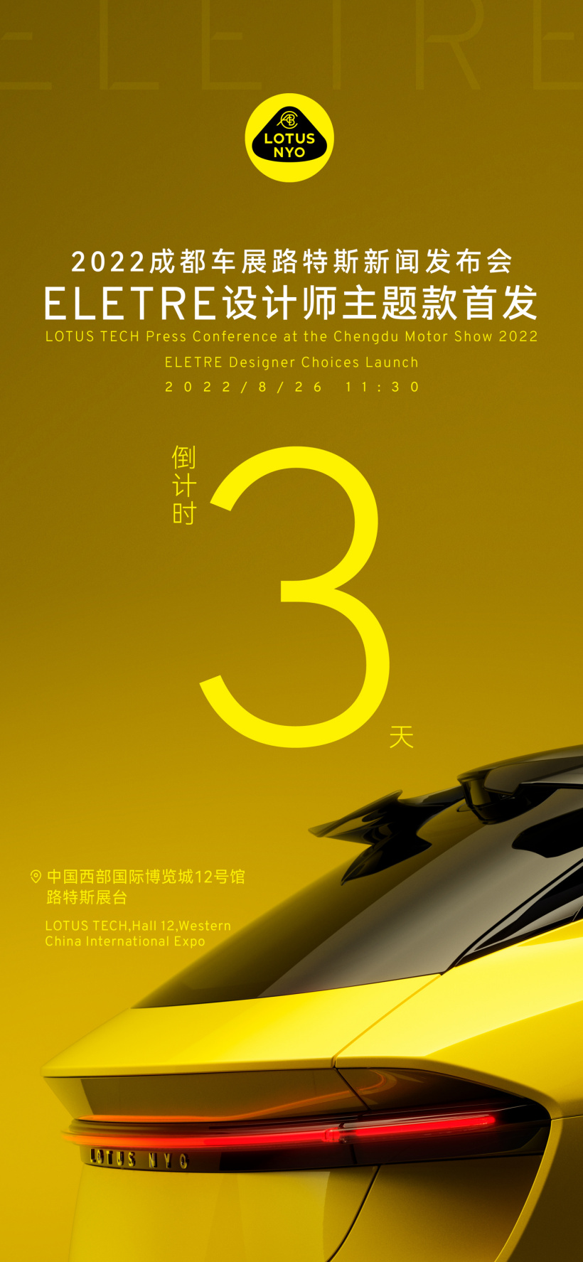 8 月 24 日消息,路特斯方面宣布纯正英伦跑车 Eletre、Emira 将于成都车展同台亮相。也就是说,路特斯 Eletre 将在成都车展迎来首秀。新车基于 EPA 平台打造,将于今年第三季度正式上市。
