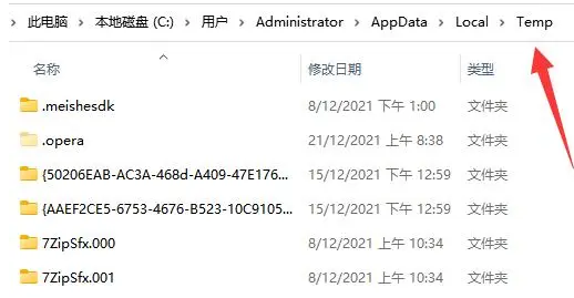 4、首先是“C:\Users\Administrator\appData\Local”下的“temp”文件夹。