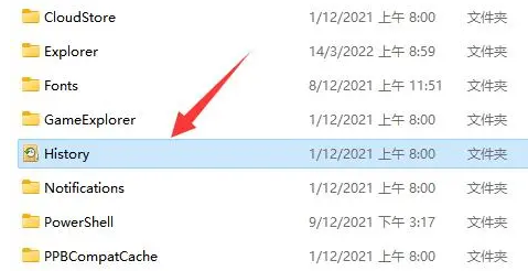 7、这里保存的是我们的历史记录,一般来说也没什么用,可以将它删除。