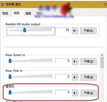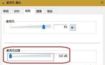 3、在属性界面的“等级”标识下将话筒设置为0。