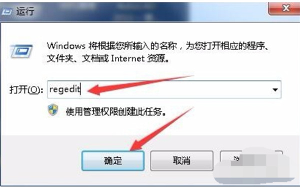 1、同时按下win+R键,打开运行对话框,输入打开regedit,点击确定。