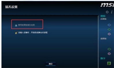 6、勾选“禁用前板插孔检验”,并确定。