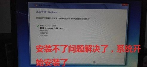 4、重启电脑,系统开始执行安装。之前出现的问题已经不见了,开始享受静静的安装吧。