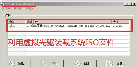 1、利用PE系统里的虚拟光驱软件加载WIN7 ISO文件。