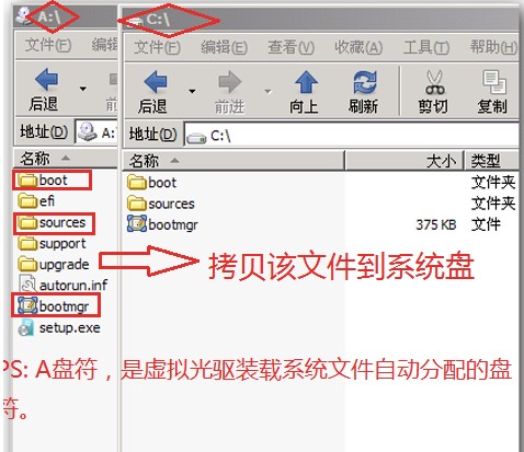 PS:先格式化C盘,再拷贝系统文件到C盘。