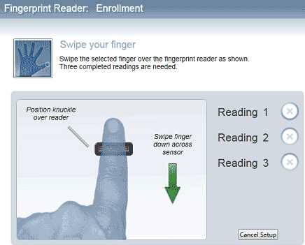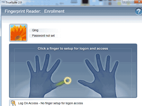 4、最后要做的就是根据电脑提示将相应的手指指纹放到扫描器上进行识别,一切等系统完成提示后,那么指纹识别系统设置就完成了。