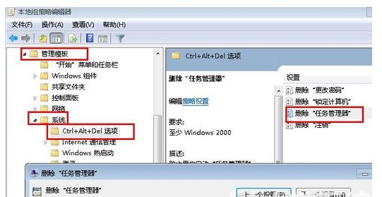 1、依次点一下“开始-运行”,在运行弹出框中输入gpedit.msc打开组策略,之后在组策略中依次“顾客配备→管理模版→系统→CTRL ALT DELE选项”,然后在左侧寻找并双击鼠标“删除任务管理器”项,把它设为未配备或者禁用就可以。