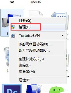 2、当然,我们也可以通过右击桌面或“开始”菜单中的“计算机”图标,从弹出的右键菜单中选择“管理”项;如图所示: