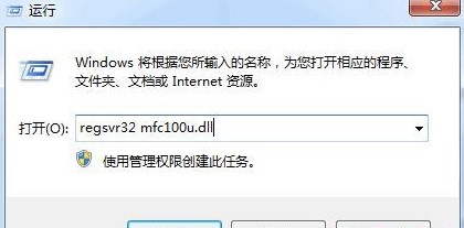3、按win r开启运行窗口,输入regsvr32 mfc100u.dll,回车键实行就可以。