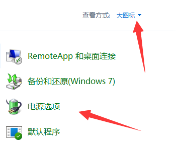 2、接着更改查看方式为“大图标”并打开“电源选项”;