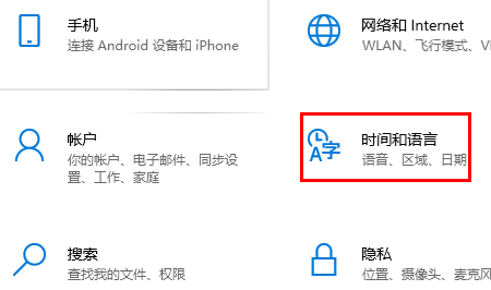 2、然后去进入“时间和语言”。