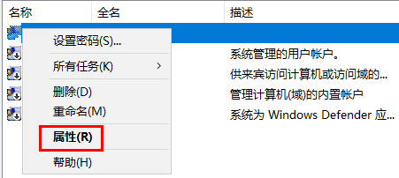 4、右键选择图示用户,点击“属性”。