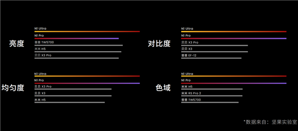 从发布会上的数据对比来看,在目氪™光机加持下,N1 系列各项表现碾压友商毫无悬念,且很长一段时间内将持续碾压。但最重要的是,坚果投影把万元以上级别的显示技术带到了消费级,让家用投影正式进入到三色激光时代。