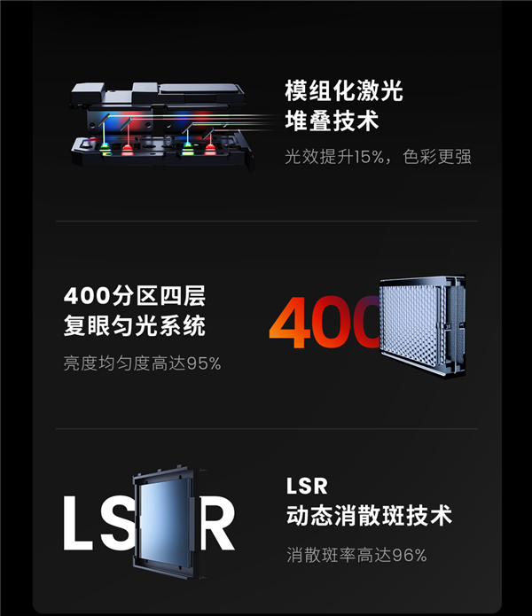 目氪光机搭载业内首创LSR动态自适应消散斑模组,可消除96%散斑,远超行业水平,堪称散斑消除“杀手级武器”。