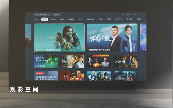 观影空间,即原经典模式,提供观影娱乐等各类型的视频内容,海量影视剧综艺资源、支持儿童模式、运动健身、云游戏、KTV等丰富家庭娱乐形式。