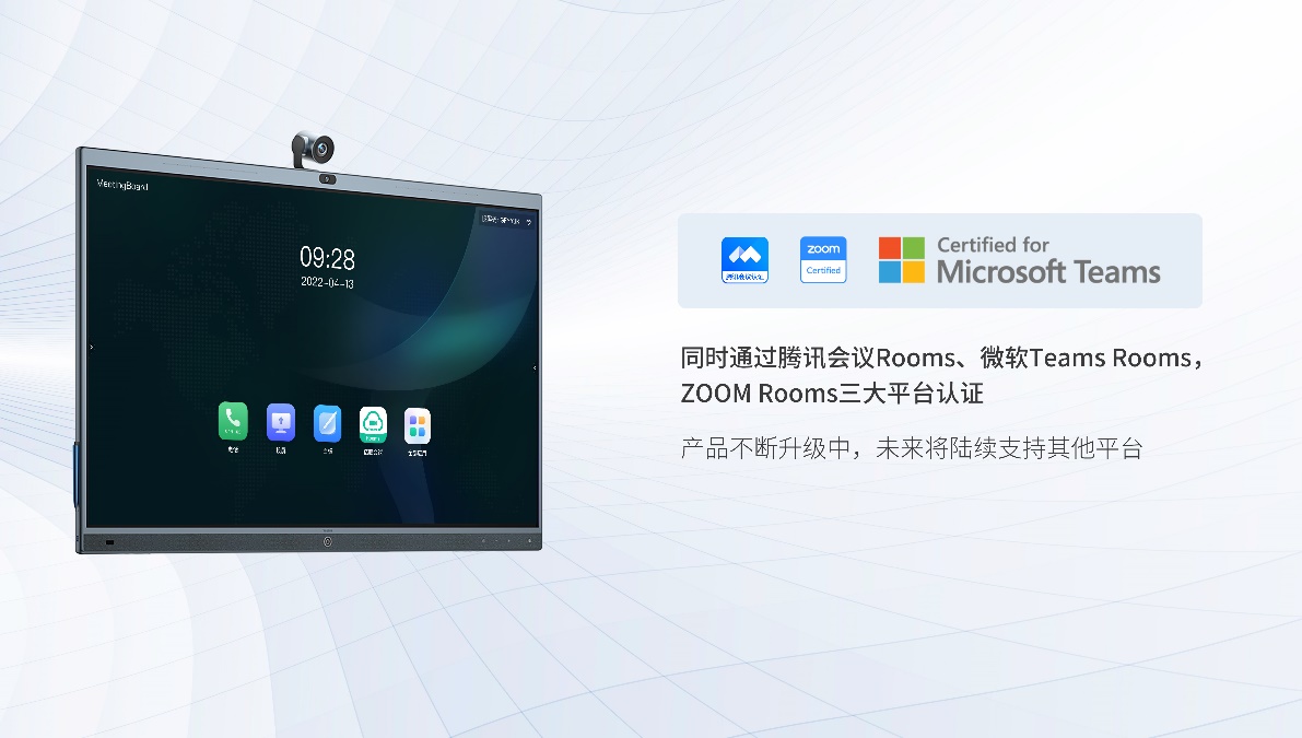亿联音视频会议平板支持标准H.323/SIP协议,能够支持原生腾讯会议ROOMS、ZOOM、微软Teams、亿联会议等主流视频会议平台。内置内置4K专业级摄像机模组以及16个线性麦克风阵列,12米优质拾音,搭载亿联自主研发的第二代智能消噪技术,让出色的远程视频成为亿联音视频会议平板核心优势之一。该产品集4K会议体验、专业音视频能力、高效协作白板、无线投屏等功能于一身,是企业视频会议的实力派。