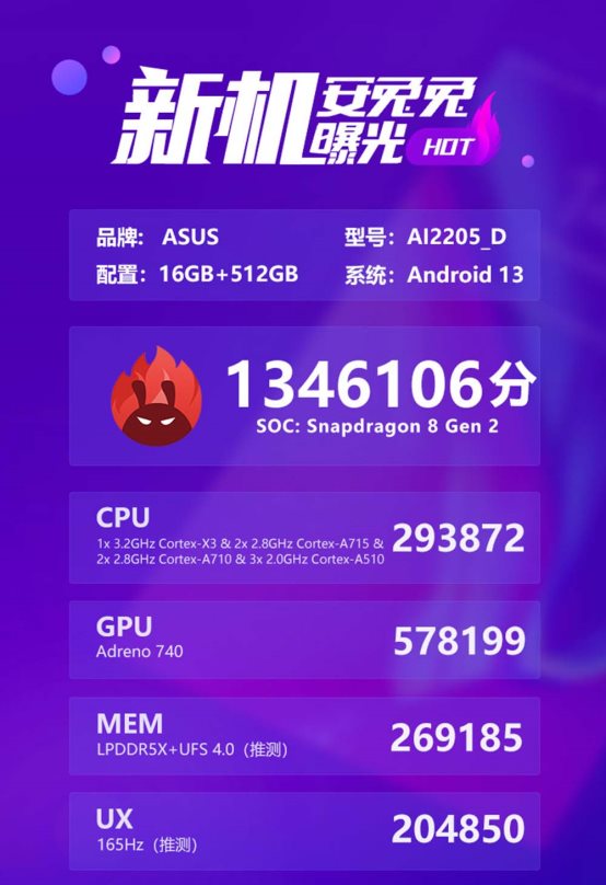 对于手游玩家而言,性能是流畅体验的基础。从曝光消息来看,腾讯ROG游戏手机7系列将实现“性能再进化“,或搭载最新的骁龙8 Gen2处理器,标配满血版LPDDR5X+满血版UFS4.0,拥有更强的性能和更优秀的功耗控制,安兔兔跑分更是达到了1346106,可见ROG对新机的性能进行了更加激进的调教,具体的游戏表现值得期待!